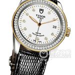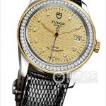 Tudor Jade 55023 – Gold Dial Jacquard with Diamonds, Gold Bezel with Diamonds, and Purple Lizard Leather Strap Automatic machinery, stainless steel, 36mm
