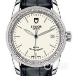 Basic Information ID: m53008-0019 Brand: Tudor Series: Junjue Movement Type: Automatic Mechanical Gender: Ladies’ Movement: T201 Movement Type: Automatic Mechanical Power Reserve: 38 hours Appearance: Case Diameter: 31 mm Case Thickness: Not Available Dial Color: Eggshell Dial Shape: Round Strap Color: Black Clasp Type: Folding Clasp Case Back: Not Available Weight: Not Available Water Resistance: 100 meters Hour Marker Type: Not Available Clasp Spacing: Not Available Lug Spacing: Not Available Materials: Case Material: 18k gold, double bezel Dial Material: Leaf-shaped hands Bezel Material: Not Available Crystal Material: Sapphire crystal Crown Material: Gold screw-down winding crown with Tudor logo Strap Material: Leather buckle material: Not Available Functions: Date display