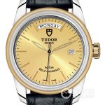 Basic Information Number M56003-0035 Brand Tudor Series Junjue Movement Type Automatic Mechanical Gender Men’s Movement Movement Model T603 Movement Type Automatic Mechanical Manufacturer ETA Power Reserve 38 hours Appearance Case Diameter: 39 mm Case Thickness: 10.6 mm Dial Color: Champagne Dial Shape: Round Strap Color: Black Clasp Type: Folding Clasp Case Back: Solid Case Back Weight: Not available Water Resistance: 100 meters Hour Marker Type: Diamond-set Hour Markers Clasp Spacing: Not available Lug Spacing: Not available Materials Case Material: Stainless Steel Dial Material: Champagne-colored, set with 10 diamonds; leaf-shaped hands Bezel Material: Gold and Steel Double Bezel Crystal Material: Sapphire Crystal Glass Crown Material: Gold Screw-down winding crown with Tudor logo Strap Material: Leather Strap Clasp Material: Stainless Steel Functions: Date Display, Day Display