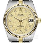 Basic Information Number M76213-0008 Brand Tudor Series Prince & Princess Movement Type Automatic Mechanical Gender Men’s Movement Movement Model T603 Movement Type Automatic Mechanical Manufacturer ETA Power Reserve 38 hours Appearance Case Diameter: 36 mm Case Thickness: Not available Dial Color: Silver Dial Shape: Round Strap Color: Two-tone Clasp Type: Folding Clasp Case Back: Not available Weight: Not available Water Resistance: 100 meters Hour Marker Type: Diamond-set Hour Markers Clasp Spacing: Not available Lug Spacing: Not available Materials Case Material: Stainless Steel Dial Material: Silk, set with 10 diamonds Bezel Material: 18k Gold, fluted outer ring Crystal Material: Sapphire Crystal Glass Crown Material: Gold Screw-down winding crown, adorned with the Tudor logo Strap Material: Stainless Steel/18k Gold; Two-tone Clasp Material: Stainless Steel Functions: Date Display, Day Display