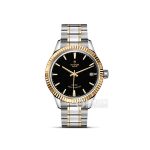 Basic Information: ID 12113 (41mm) Brand: Tudor Series: Fashion Movement Type: Automatic Gender: Men’s Movement Model: ETA 2824 Movement Type: Automatic Manufacturer: ETA Frequency: 28,800 vibrations per hour Number of Jewels: 25 Power Reserve: 42 hours Appearance: Case Diameter: 41mm Case Thickness: Not available Dial Color: Black Dial Shape: Round Strap Color: Black Clasp Type: Not available Case Back: Not available Weight: Not available Water Resistance: 100 meters Hour Marker Type: Not available Clasp Spacing: Not available Lug Spacing: Not available Materials: Case Material: Stainless steel, polished and brushed Dial Material: Not available Bezel Material: Not available Crystal Material: Sapphire Crystal Crown Material: Stainless steel, screw-down winding crown Strap Material: Leather Clasp Material: Not available Functions: Date Display