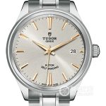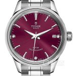 Basic Information Number: m12310-0013 Brand: Tudor Series: Fashion Movement Type: Automatic Mechanical Gender: Ladies’ Movement: T601 Movement Type: Automatic Mechanical Manufacturer: Tudor Frequency: 28,800 vibrations per hour Power Reserve: 38 hours Appearance: Case Diameter: 34 mm Case Thickness: 9.9 mm Dial Color: Blue Dial Shape: Round Strap Color: Silver Clasp Type: Folding Clasp and Safety Clasp Case Back: Solid Case Back Weight: Not Available Water Resistance: 100 meters Hour Marker Type: Bat Hour Markers Clasp Spacing: Not Available Lug Spacing: Not Available Materials: Case Material: Polished and brushed steel Dial Material: Not Available Bezel Material: Stainless steel with triangular knurled outer bezel Crystal Material: Sapphire crystal Crown Material: Stainless steel Screw-down winding crown with Tudor logo Strap Material: Stainless steel Clasp Material: Polished and brushed steel Functions: Date Display