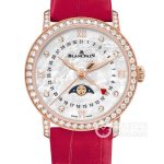 Basic Information Number: 8153-230BLE/60-06 Brand: Ulysse Nardin Series: Gilded Movement Type: Automatic Mechanical Gender: Women’s Limited Edition: 99 Movement Model: UN-815 Movement Type: Automatic Mechanical Manufacturer: Ulysse Nardin Power Reserve: 42 hours Appearance: Case Diameter: 34 mm Case Thickness: Not Available Dial Color: White Dial Shape: Round Strap Color: Garnet Red Clasp Type: Pin Buckle Case Back: Solid Weight: Not Available Water Resistance: 30 meters Hour Marker Type: Arabic Numerals Clasp Spacing: Not Available Lug Spacing: Not Available Materials: Case Material: Stainless Steel Dial Material: White mother-of-pearl and diamond dial with garnet red Arabic numeral hour markers; 9 diamonds, VS clarity, total weight 0.04 carats Bezel Material: Set with 60 diamonds, total weight 0.80 carats Crystal Material: Anti-reflective and scratch-resistant sapphire crystal Crown Material: Not Available Strap Material: Alligator leather Clasp Material: Stainless steel Functions: This watch has no other special functions.
