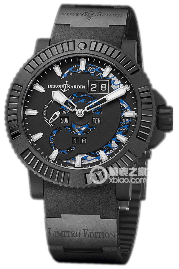 Basic Information Number: 333-92B2-3C/923 Brand: Ulysse Nardin Series: Complicated Functions Movement Type: Automatic Mechanical Gender: Men’s Movement Model: UN-33 Movement Type: Automatic Mechanical Number of Jewels: 34 Appearance: Case Diameter: 45.8 mm Case Thickness: Not Available Dial Color: Black Dial Shape: Round Strap Color: Black Clasp Type: Folding Clasp Case Back: Transparent Weight: Not Available Water Resistance: 200 meters Hour Marker Type: Bat Hour Markers Clasp Spacing: Not Available Lug Spacing: Not Available Materials: Case Material: Stainless Steel/Rubber Dial Material: Not Available Bezel Material: Not Available Crystal Material: Sapphire Crystal Crown Material: Not Available Strap Material: Rubber/Ceramic Clasp Material: Stainless Steel Functions: Date Display, Day Display, Month Display, Perpetual Calendar