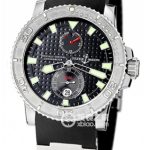 Basic Information: ID: 266-34C/BAG-3A/92; Brand: Ulysse Nardin; Series: Diving; Movement Type: Automatic; Gender: Men’s; Movement Model: UN-26; Movement Type: Automatic; Manufacturer: Ulysse Nardin; Base Movement: ETA 2892-2; Movement Diameter: 25.6 mm; Movement Thickness: 5.1 mm; Frequency: 28,800 vibrations per hour; Number of Jewels: 28; Power Reserve: 42 hours; Exterior: Case Diameter: 42.7 mm; Case Thickness: Not available; Dial Color: Black; Dial Shape: Round; Strap Color: Black; Clasp Type: Folding Clasp; Case Back: Transparent; Weight: Not available; Water Resistance: 200 meters; Hour Marker Type: Luminous; Clasp Spacing: Not available; Lug Spacing: Not available; Materials: Case Material: 18k Rose Gold with Diamonds; Dial Material: Not available; Bezel Material: 18k Rose Gold with Diamonds; Crystal Material: Sapphire Crystal; Crown Material: Not available; Strap Material: Rubber; Clasp Material: 18k Rose Gold; Functions: Date Display, Power Reserve Display