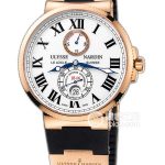 Basic Information Number: 265-90-8M/91 Brand: Ulysse Nardin Series: Diving Movement Type: Automatic Mechanical Gender: Men’s Movement: Movement Model: UN-26 Movement Type: Automatic Mechanical Manufacturer: Ulysse Nardin Base Movement: ETA 2892-2 Movement Diameter: 25.6 mm Movement Thickness: 5.1 mm Frequency: 28,800 vibrations per hour Jewels: 28 Power Reserve: 42 hours Appearance: Case Diameter: 45 mm Case Thickness: Not Available Dial Color: Silver Gray Dial Shape: Round Strap Color: Two-tone Clasp Type: Folding Clasp Case Back: Not Available Weight: Not Available Water Resistance: 200 meters Hour Marker Type: Luminous Hour Markers Clasp Spacing: Not Available Lug Spacing: Not Available Materials: Case Material: 18k Rose Gold-Titanium Dial Material: Not Available Bezel Material: 18k Rose Gold-Titanium Crystal Material: Sapphire Crystal Crown Material: 18k Rose Gold Strap Material: 18k Rose Gold-Titanium; Two-tone Clasp Material: 18k Rose Gold-Titanium Functions: Date Display, Power Reserve Display