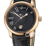 Basic Information Number 1185-122/41 Brand: Ulysse Nardin Series: Marine Movement Type: Automatic Mechanical Gender: Men’s Movement: UN-118 Movement Type: Automatic Mechanical Manufacturer: Ulysse Nardin Power Reserve: 60 hours Appearance: Case Diameter: 45mm Case Thickness: Not Available Dial Color: Silver White Dial Shape: Round Strap Color: Dark Brown Clasp Type: Folding Clasp Case Back: Not Available Weight: Not Available Water Resistance: 200 meters Hour Markers: Roman Numerals Clasp Spacing: Not Available Lug Spacing: Not Available Materials: Case Material: 18k Rose Gold/Titanium Dial Material: Not Available Bezel Material: 18k Rose Gold/Titanium Crystal Material: Sapphire Crystal Crown Material: Not Available Strap Material: Leather Strap Clasp Material: 18k Rose Gold/Titanium Functions: Date Display Power Reserve Display
