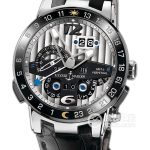 Basic Information ID: 326-90-8M/92 Brand: Ulysse Nardin Series Precious and Unique Model Movement Type: Automatic Mechanical Gender: Men’s Movement Power Reserve: 42 hours Appearance Case Diameter: 42 mm Case Thickness: Not Available Dial Color: Black Dial Shape: Square Strap Color: Gold Clasp Type: Folding Clasp Case Back: Solid Case Back Weight: Not Available Water Resistance: 50 meters Hour Marker Type: Bat Hour Markers Clasp Spacing: Not Available Lug Spacing: Not Available Materials Case Material: 18k Rose Gold Dial Material: Not Available Bezel Material: 18k Rose Gold Crystal Material: Sapphire Crystal Glass Crown Material: Not Available Strap Material: 18k Rose Gold Clasp Material: 18k Rose Gold Functions Date Display Day Display Month Display Annual Calendar Large Date Perpetual Calendar Dual Time Zone