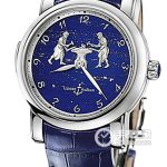 Basic Information ID 329-60 Brand: Ulysse Nardin Series Rare and Unique Model Movement Type: Automatic Mechanical Gender: Men’s Limited Edition: 500 Movement Type: Automatic Mechanical Power Reserve: 48 hours Appearance Case Diameter: 42mm Case Thickness: Not Available Dial Color: Silver White Dial Shape: Round Strap Color: Black Clasp Type: Folding Clasp Case Back: Solid Case Back Weight: Not Available Water Resistance: 30 meters Hour Marker Type: Bat Hour Markers Clasp Spacing: Not Available Lug Spacing: Not Available Materials Case Material: 950 Platinum Dial Material: Silver-plated Bezel Material: 950 Platinum Crystal Material: Sapphire Crystal Glass Crown Material: Not Available Strap Material: Genuine Leather Clasp Material: 950 Platinum Functions Date Display, Day Display, Month Display, Annual Calendar, Large Date, Perpetual Calendar, Dual Time Zone