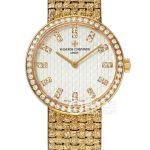 Basic Information: Model Number 25162/206G-9176; Brand: Vacheron Constantin; Series: Patrimony; Movement Type: Quartz; Gender: Ladies; Movement Model: Cal. 1202; Movement Type: Quartz; Manufacturer: Vacheron Constantin; Movement Diameter: 13mm; Movement Thickness: 2.1mm; Frequency: 32,768 Hz; Number of Jewels: 4; Number of Parts: 33; Case Diameter: 29mm; Case Thickness: 6.3mm; Dial Color: Silver-white; Dial Shape: Round; Strap Color: Silver; Clasp Type: Folding Clasp; Case Back: Solid; Weight: Not Available; Water Resistance: 30 meters; Hour Marker Type: Bat; Clasp Spacing: Not Available; Lug Spacing: Not Available; Materials: Case Material: 18k white gold with diamonds; Dial Material: Metal; Bezel Material: 18k white gold with diamonds; Crystal Material: Sapphire Crystal; Crown Material: Not Available; Strap Material: Diamond-set 18k white gold; Clasp Material: 18k white gold with diamonds; Functions: This watch has no other special functions.