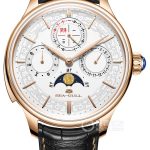 Basic Information: Model Number 1405T/000R-H061; Brand: Vacheron Constantin; Series: Heritage; Movement Type: Manual Mechanical; Gender: Women’s; Limited Edition: 270; Movement: Movement Model 1440/270; Movement Type: Manual Mechanical; Movement Diameter: 22.1 mm; Movement Thickness: 2.6 mm; Frequency: 28,800 vibrations per hour; Jewels: 19; Parts: 116; Power Reserve: 42 hours; Exterior: Case Diameter: 33 mm; Case Thickness: 7.7 mm; Dial Color: Pink; Dial Shape: Round; Strap Color: Purple; Buckle Type: Pin Buckle; Case Back: Transparent; Weight: Not Available; Water Resistance: 30 meters; Hour Marker Type: Bat; Buckle Spacing: Not Available; Lug Spacing: Not Available; Materials: Case Material: 18K Pink Gold; Dial Material: Mother-of-Pearl; Bezel Material: 18K Pink Gold with Diamonds; Crystal Material: Sapphire Crystal; Crown Material: 18K Pink Gold; Strap Material: Alligator Leather; Buckle Material: 18K Pink Gold; Functions: This watch has no other special functions.