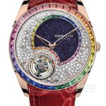 18k white gold case set with 197 round-cut diamonds.