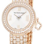 Basic Information ID: VCARN5KC00 Brand: Van Cleef & Arpels Series: ALHAMBRA Movement Type: Quartz Gender: Ladies Movement Type: Quartz Case Diameter: 27×27 mm Case Thickness: 5.65 mm Dial Color: White Dial Shape: Other Strap Color: Gold Clasp Type: Buckle Case Back: Solid Weight: Not available Water Resistance: 30 meters Hour Marker Type: None Hour Marker Spacing: Not available Lug Spacing: Not available Materials: Case Material: Rose Gold with Diamonds Dial Material: Mother-of-Pearl Bezel Material: Rose Gold with Diamonds Crystal Material: Sapphire Crystal Crown Material: Rose Gold Strap Material: Rose Gold with Diamonds Clasp Material: Rose Gold Functions: This watch has no other special functions.