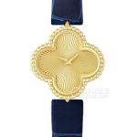 Basic Information ID: VCARO8WU00 Brand: Van Cleef & Arpels Series: ALHAMBRA Movement Type: Quartz Gender: Ladies Movement Type: Quartz Case Diameter: 22.7 x 22.7 mm Case Thickness: Not Available Dial Color: Black Dial Shape: Other Strap Color: Black Clasp Type: Pin Buckle (with one interchangeable pin buckle) Case Back: Not Available Weight: Not Available Water Resistance: 30 meters Hour Markers: None Hour Marker Spacing: Not Available Lug Spacing: Not Available Materials: Case Material: 18k white gold Dial Material: Onyx Bezel Material: 18k white gold Crystal Material: Sapphire Crystal Crown Material: 18k white gold Strap Material: Alligator Leather (with two interchangeable straps) Clasp Material: 18k white gold, pavé-set with round diamonds Functions: This watch has no other special functions.