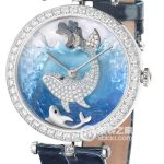 Basic Information ID: VCARM95100 Brand: Van Cleef & Arpels Series: CHARMS Movement Type: Quartz Gender: Ladies Movement Type: Quartz Case Diameter: 38mm Case Thickness: Not Available Dial Color: White Dial Shape: Round Strap Color: Black (White can be replaced) Clasp Type: Pin Buckle Case Back: Solid Weight: Not Available Water Resistance: 30 meters Hour Marker Type: Roman Numerals Clasp Spacing: Not Available Lug Spacing: Not Available Materials: Case Material: Rose Gold with Diamonds Dial Material: Lacquered Bezel Material: Rose Gold with Diamonds Crystal Material: Sapphire Crystal Crown Material: Rose Gold with Round Diamonds Strap Material: Satin Clasp Material: Rose Gold Functions: This watch has no other special functions.
