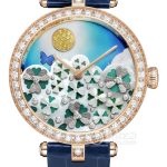 Basic Information ID: VCARPBNZ00 Brand: Van Cleef & Arpels Series: PERLEE Movement Type: Quartz Gender: Ladies Movement Type: Quartz Case Diameter: 23mm Case Thickness: Not Available Dial Color: White Dial Shape: Round Strap Color: Blue Buckle Type: Pin Buckle Case Back: Not Available Weight: Not Available Water Resistance: 30 meters Hour Marker Type: None Hour Marker Spacing: Not Available Lug Spacing: Not Available Material: Case Material: 18K Gold Dial Material: Guilloché White Mother-of-Pearl Dial Bezel Material: Guilloché White Mother-of-Pearl Dial Crystal Material: Sapphire Crystal Glass Crown Material: Not Available Strap Material: Alligator Leather Buckle Material: 18K Gold Functions: This watch has no other special functions.