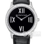 Basic Information ID: VCARO24500 Brand: Van Cleef & Arpels Series: Pierre Arpels Movement Type: Manual Mechanical Gender: Men’s Movement Type: Manual Mechanical Appearance: Case Diameter: 42mm Case Thickness: Not Available Dial Color: White Dial Shape: Round Strap Color: Black Clasp Type: Pin Buckle Case Back: Solid Weight: Not Available Water Resistance: 30 meters Hour Marker Type: Bat Hour Markers, Roman Numerals Clasp Spacing: Not Available Lug Spacing: Not Available Materials: Case Material: White Gold with Diamonds Dial Material: Not Available Bezel Material: White Gold with Diamonds Crystal Material: Sapphire Crystal Crown Material: White Gold Strap Material: Alligator Leather Clasp Material: White Gold Functions: This watch has no other special functions.