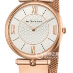 Basic Information Number: VCARO4FW00; Brand: Van Cleef & Arpels; Series: Pierre Arpels; Movement Type: Manual Mechanical; Gender: Men’s; Movement Model: Cal.830P Movement Type: Manual Mechanical; Manufacturer: Piaget; Movement Diameter: 26.8 mm; Balance Wheel Screw: Balance Wheel; Frequency: 21,600 rpm; Number of Jewels: 19; Number of Parts: 131; Power Reserve: 60 hours; Case Diameter: 38 mm; Case Thickness: 5.79 mm; Dial Color: White; Dial Shape: Round; Strap Color: Silver; Clasp Type: Buckle; Case Back: Not Available; Weight: Not Available; Water Resistance: 30 meters; Hour Markers: Bat-shaped; Hour Markers: Roman Numerals; Clasp Spacing: Not Available; Lug Spacing: Not Available; Materials: Case Material: 18k White Gold; Dial Material: Lacquered with Honeycomb Pattern; Bezel Material: Not Available; Crystal Material: Sapphire Crystal; Crown Material: 18k White Gold with Round Diamonds; Strap Material: 18k White Gold, Medium Size; Hand-Imprinted Milanese Stitched White Gold; Strap Clasp Material: 18k White Gold; Functions: This watch has no other special functions.