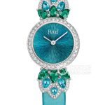 Basic Information: Secret Watch Brand: Van Cleef & Arpels Movement Type: Quartz Gender: Ladies Movement Type: Quartz Appearance: Case Diameter: Not Available Case Thickness: Not Available Dial Color: Dark Blue Dial Shape: Square Strap Color: Not Available Clasp Type: Not Available Case Back: Not Available Weight: Not Available Water Resistance: 30 meters Hour Marker Type: None Hour Marker Spacing: Not Available Lug Spacing: Not Available Materials: Case Material: 18k White Gold Dial Material: Not Available Bezel Material: 18k White Gold, set with rubies, colored sapphires, onyx, lapis lazuli, and diamonds Crystal Material: Sapphire Crystal Glass Crown Material: Not Available Strap Material: 18k Yellow Gold, 18k White Gold Clasp Material: Not Available Functions: This watch has no other special functions.