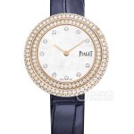 Basic Information ID: VCARO8X000 Brand: Van Cleef & Arpels Movement Type: Quartz Gender: Ladies’ Movement Type: Quartz Case Diameter: 33mm Case Thickness: Not Available Dial Color: White Gold Dial Shape: Other Strap Color: Navy Blue Clasp Type: Pin Buckle Case Back: Not Available Weight: Not Available Water Resistance: 30 meters Hour Marker Type: None Hour Marker Spacing: Not Available Lug Spacing: Not Available Materials: Case Material: 18k white gold with diamonds Dial Material: White gold with round diamonds Bezel Material: 18k white gold with diamonds Crystal Material: Sapphire crystal Crown Material: Not Available Strap Material: Gross satin bracelet Clasp Material: 18k white gold with round diamonds Functions: This watch has no other special functions.