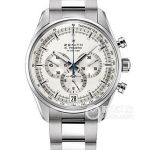 Basic Information ID: 18.2180.4003/01.C713 Brand: Zenith Series: EL PRIMERO Gender: Men’s Movement: El Primero 4003 Manufacturer: Unknown Movement Diameter: 30.50 mm Movement Thickness: 8.10 mm Frequency: 36,000 vibrations per hour Jewels: 31 Parts: 321 Power Reserve: 50 hours Case Diameter: 42 mm Case Thickness: 15 mm Dial Color: Silver Dial Shape: Round Strap Color: Brown Clasp Type: Folding Clasp Case Back: Transparent Weight: Not available Water Resistance: 100 meters Hour Markers: Bat markers Luminous Clasp Spacing: Not available Lug Spacing: Not available Materials: Case Material: 18k Rose Gold Dial Material: Not available Bezel Material: 18k Rose Gold Crystal Material: Sapphire Crystal Crown Material: 18k Rose Gold Strap Material: Alligator Leather Clasp Material: 18k Rose Gold Functions: Date Display, Day Display, Month Display, Perpetual Calendar, Moon Phase, Chronograph