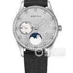 Basic Information ID: 22.2141.691/01.C498 Brand: Zenith Series: Elite Movement Type: Automatic Mechanical Gender: Men’s Movement Model: Elite 691 Movement Type: Automatic Mechanical Manufacturer: Zenith Movement Diameter: 25.6 mm Movement Thickness: 5.67 mm Frequency: 28,800 vibrations per hour Jewels: 27 Number of Parts: 228 Power Reserve: 50 hours Case Diameter: 40 mm Case Thickness: 10.4 mm Dial Color: Silver Dial Shape: Round Strap Color: Brown Clasp Type: Pin Buckle/Folding Clasp Case Back: Transparent Weight: Not available Water Resistance: 30 meters Hour Marker Type: Bat Hour Markers Clasp Spacing: Not available Lug Spacing: Not available Materials Case Material: 18k Rose Gold Dial Material: Not available Bezel Material: 18k Rose Gold with Diamonds Crystal Material: Sapphire Crystal Glass Crown Material: 18k Rose Gold Strap Material: Alligator Leather Clasp Material: 18k Rose Gold Functions: Date Display, Moon Phase
