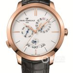 Basic Information: Large Date Moon Phase Watch Brand: Zenith Elite Movement Type: Automatic Mechanical Gender: Men’s Movement Model: Elite 691 Movement Type: Automatic Mechanical Manufacturer: Zenith Movement Diameter: 25.6 mm Movement Thickness: 5.67 mm Frequency: 28,800 vibrations per hour Jewels: 27 Number of Parts: 228 Power Reserve: 50 hours Appearance: Case Diameter: Not available Case Thickness: Not available Dial Color: Silver Gray Dial Shape: Round Strap Color: Dark Brown Buckle Type: Not available Case Back: Not available Weight: Not available Water Resistance: 50 meters Hour Marker Type: Not available Buckle Spacing: Not available Lug Spacing: Not available Materials: Case Material: Stainless Steel Dial Material: Silver The center of the dial is decorated with a Parisian clog pattern using guilloché engraving, while the small seconds and moon phase sub-dial feature a powerful sunburst pattern, clearly defined and distinct Bezel Material: Not available Crystal Material: Curved double-sided anti-reflective sapphire crystal Crown Material: Stainless Steel Strap Material: Alligator Leather Buckle Material: Stainless Steel Functions: Large Date Moon Phase