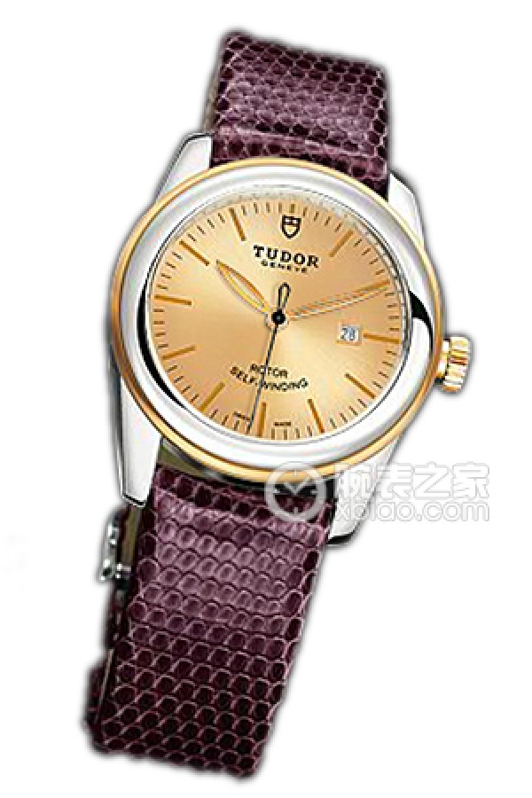 Tudor Grandeur 53003 - Gold Dial, Gold Bezel, Purple Lizard Leather Strap Automatic machinery, stainless steel, 31mm