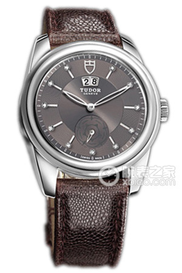 Tudor Grandeur 57000 Grey Dial with Diamonds and Burgundy Javanese Leather Strap Automatic machinery, stainless steel, 42mm