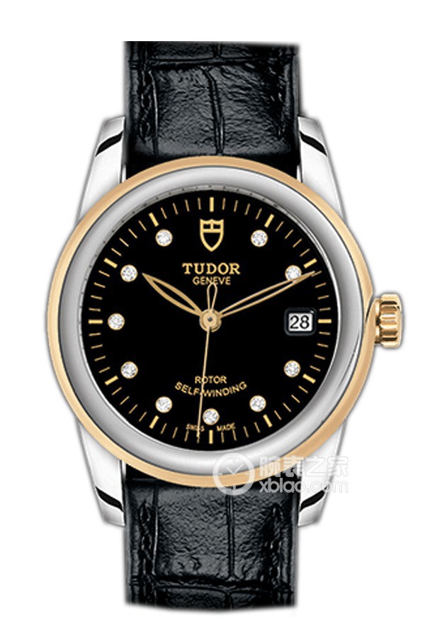 Tudor Grandeur 55003 Black Dial, Gold Bezel, Diamond-set, Black Leather Strap Automatic machinery, stainless steel, 36mm