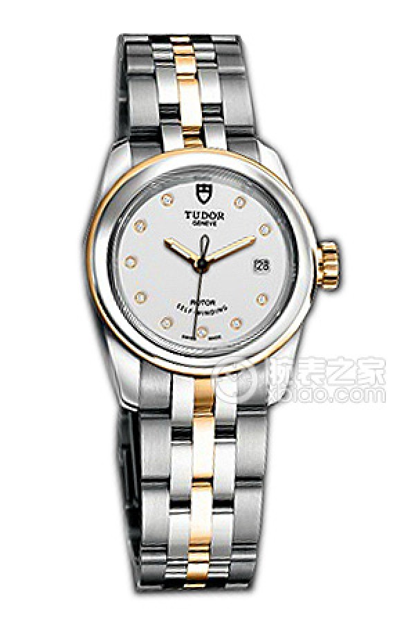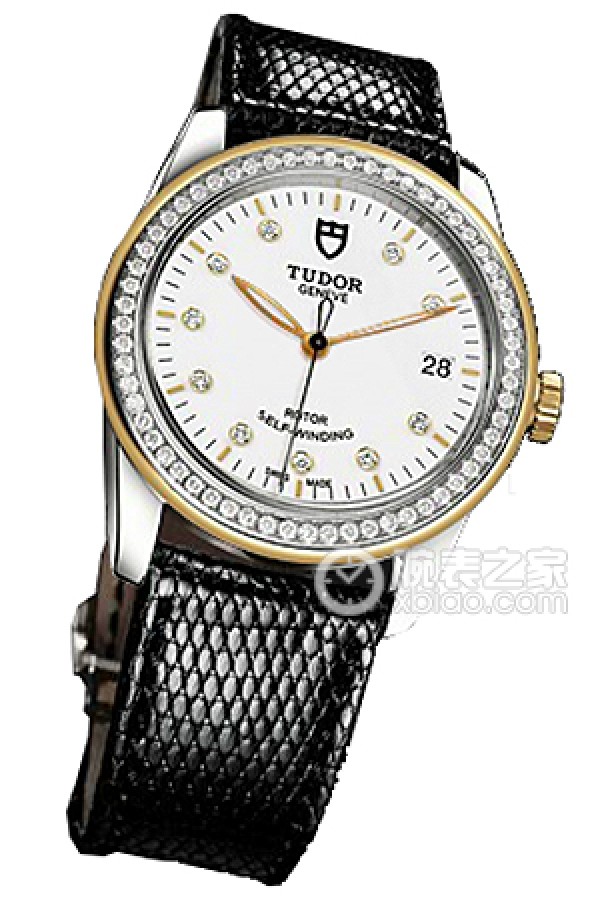 Tudor Jaguar 53003 - White dial with diamonds, gold bezel, and black lizard skin trim Automatic machinery, stainless steel, 31mm