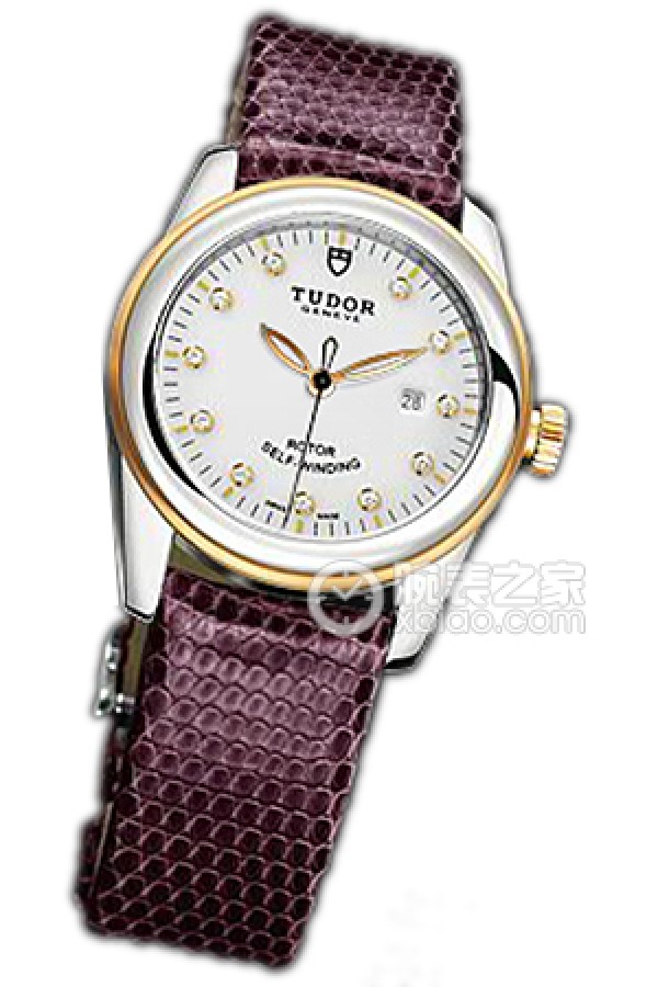 Tudor Jaguar 53003 - White dial with diamonds, gold bezel, and purple lizard skin trim Automatic machinery, stainless steel, 31mm