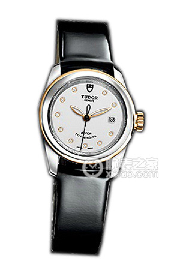 Tudor Junjue 51003 - Black patent leather strap, white dial with diamond accents Automatic machinery, stainless steel, 26mm