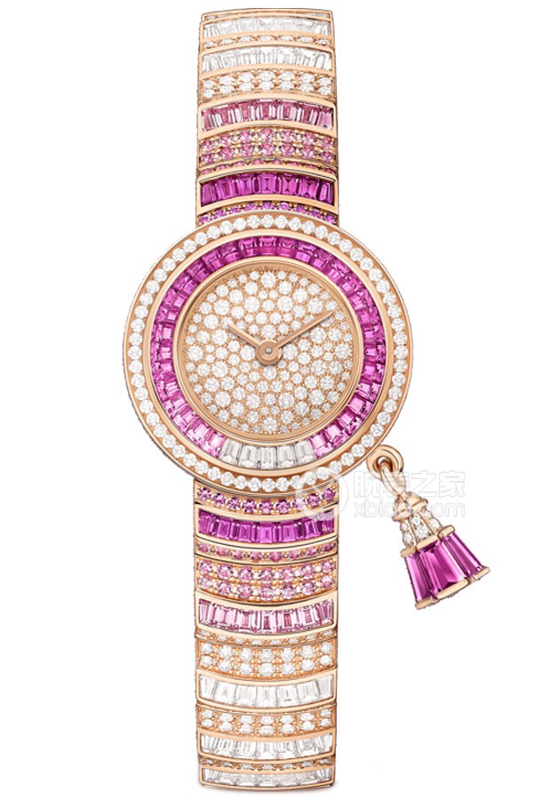 Van Cleef & Arpels CHARMSVCARO8RG00 Quartz, 18k rose gold, bezel set with round diamonds, baguette-cut diamonds, baguette-cut pink sapphire, 21mm