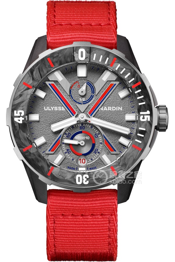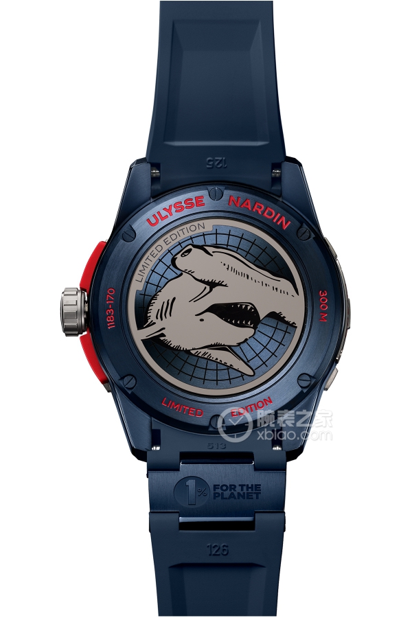 Ulysse Nardin Diver 1183-170LE-2A-VG/0B Automatic mechanical movement, 95% recycled stainless steel, case sides and lugs made of NyloFoil nylon fiber (made from recycled nylon from fishing nets and recycled carbon fiber), 44mm.