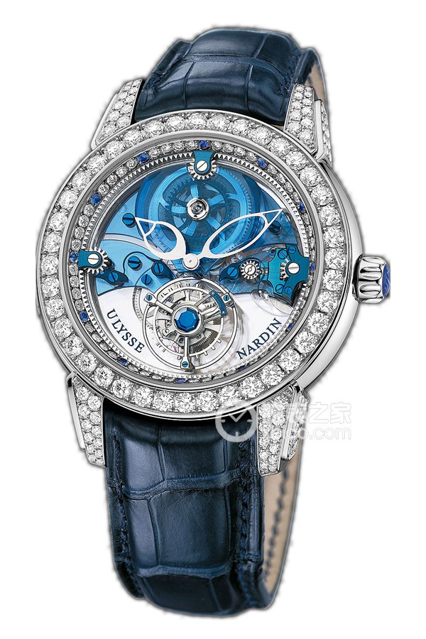 Ulysse Nardin 799-99 BAG gold-plated bezel set with round diamonds Manual mechanical, 950 platinum set with diamonds, 43mm
