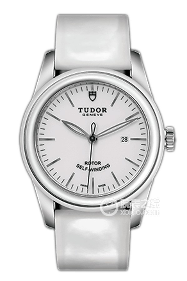 Tudor Grandeur 53010W with white dial and white patent leather Automatic machinery, stainless steel, 31mm